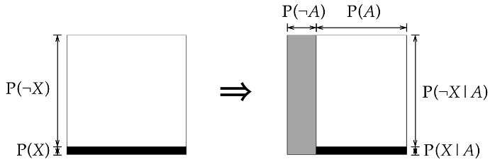 Figure 1: Meta-level uncertainty. Factoring in the fallibility of our first-order risk assessments can amplify the probability of risks assessed to be extremely small. An initial analysis (left side) gives a small probability of a disaster (black stripe). But the analysis could be wrong; this is represented by the gray area (right side). Most of the all-things-considered risk may lie in the gray area rather than in the black stripe.