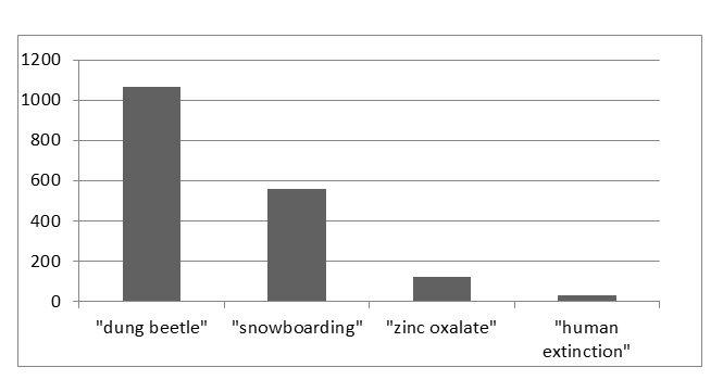 Figure 6: Academic prioritization. Number of academic papers on various topics (listed in Scopus, August 2012).